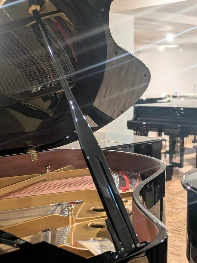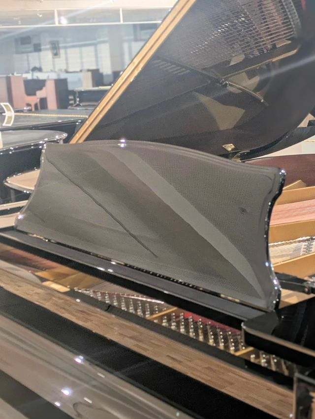 質問③ このピアノの個性はどういったところでしょうか? 一番の魅力は、よく響くしっかりした音。特に中音〜低音の力強さが印象的です。そのぶん、音が反響しやすいお部屋だと少し大きく感じるかもしれません。また、譜面台が大きめで、グランドピアノに近い演奏姿勢も取りやすいです。見た目では、部品に多少の色あせはありますが、演奏には全く問題ありません。