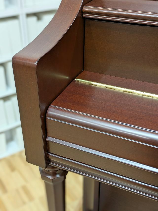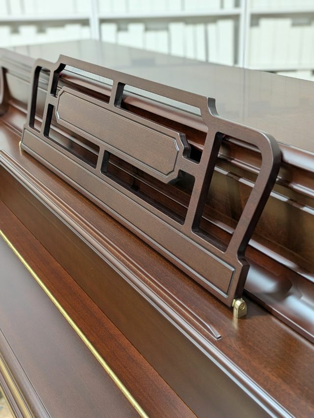 高さ110cmの小型モデルであり、木目が美しい天然木の仕上げや魅力的なフォルムの譜面台、脚柱デザインなど永く親しみやすいネオ・クラ シック様式を採用