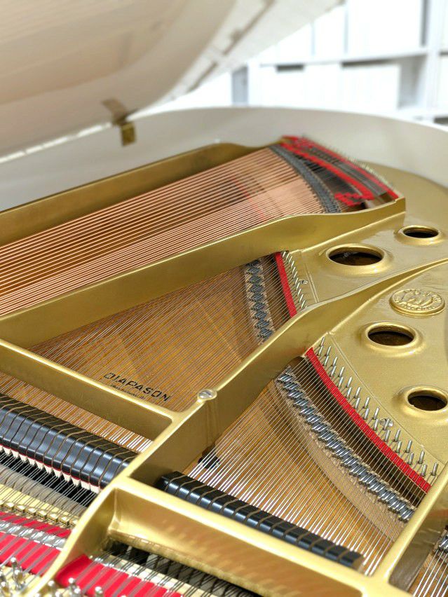 ヤマハC3クラスに相当するサイズであり、コストパフォーマンスに優れた白いグランドピアノです。